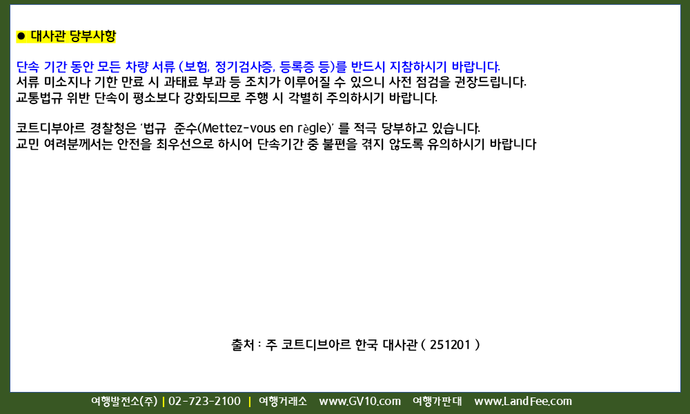 [코트디부아르] 코트디브아르, 전국 도로 검문 강화 ( 12/1 부터 ) - 25년 12/1 현재
