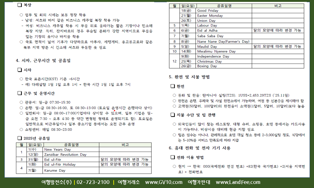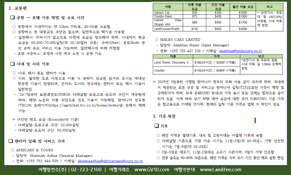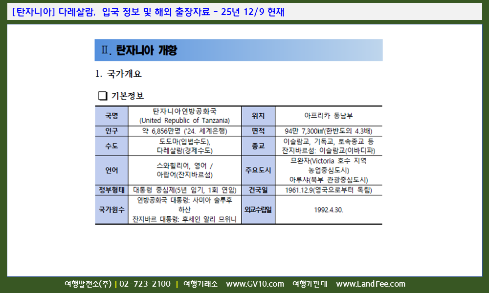 [탄자니아] 다레살람, 입국 정보 및 해외 출장자료 - 25년 12/9 현재