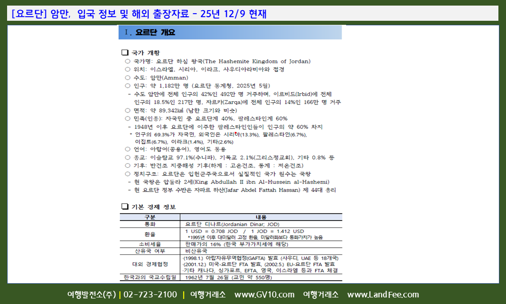 [요르단] 암만, 입국 정보 및 해외 출장자료 - 25년 12/9 현재