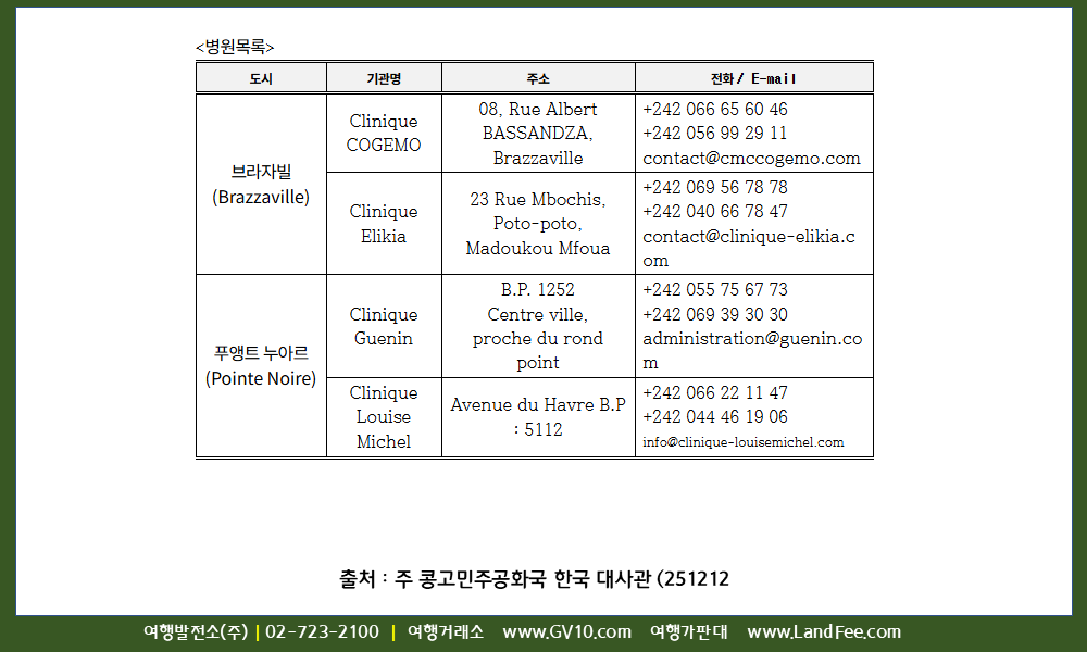 [콩고공화국] 콩고공화국, 안전여행 길잡이 - 25년 12/12 현재