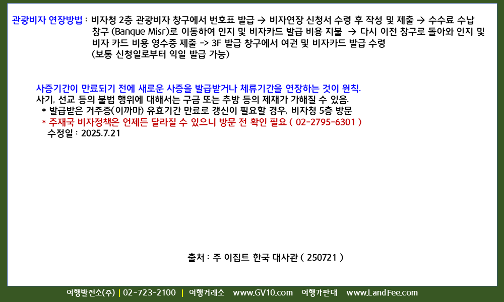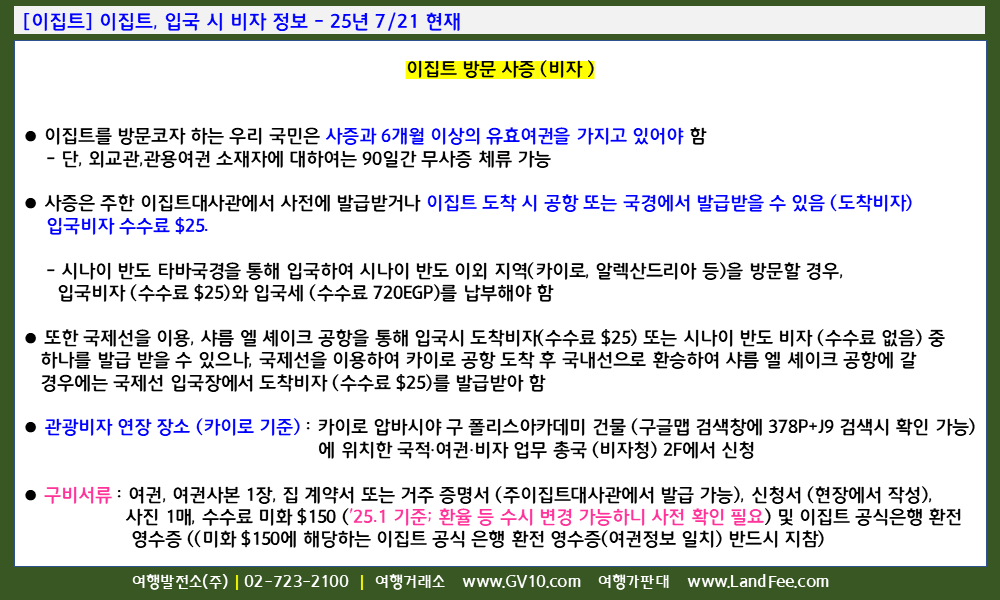 [이집트] 이집트, 입국 시 비자 정보 - 25년 7/21 현재