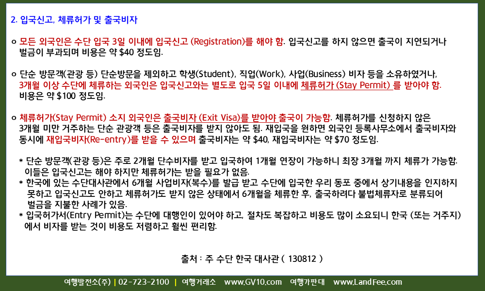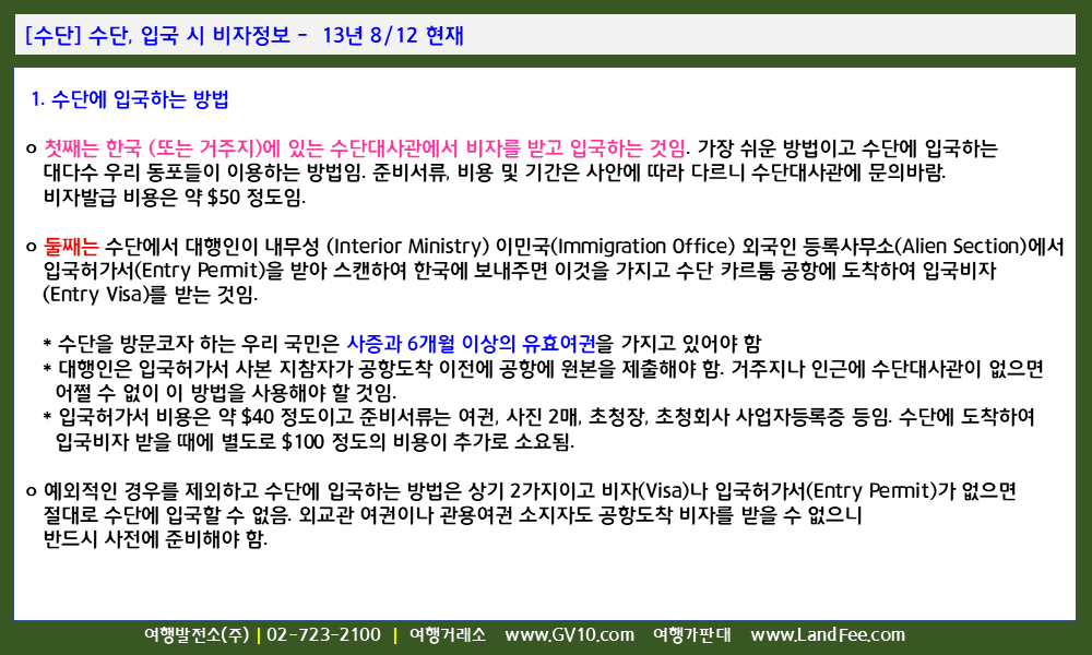 [수단] 수단, 입국 시 비자정보 - 13년 8/12 현재