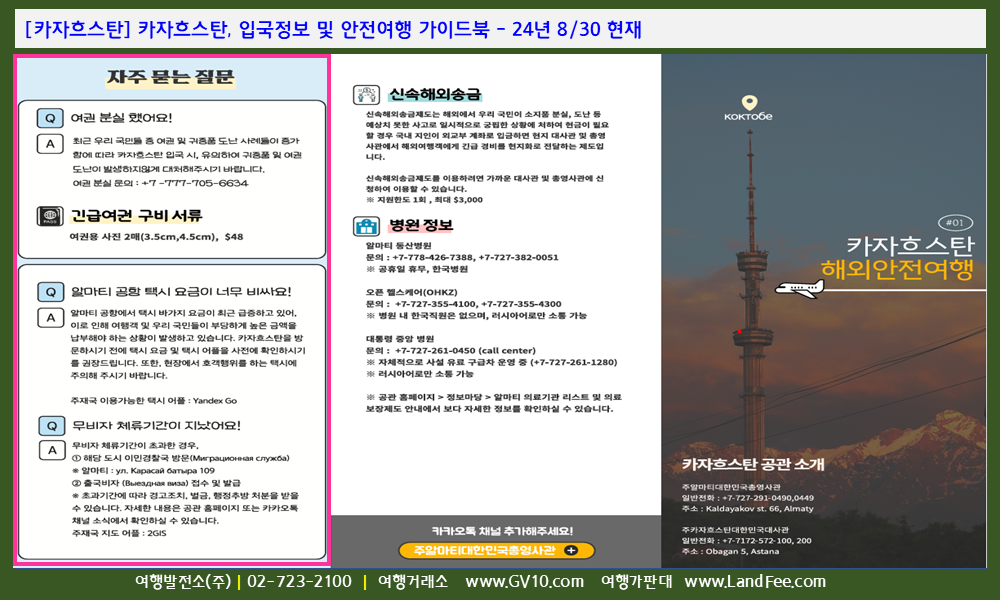 [카자흐스탄] 카자흐스탄, 입국정보 및 안전여행 가이드북 - 24년 8/30 현재