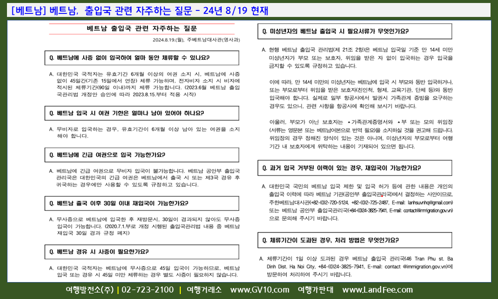 [베트남] 베트남, 출입국 관련 자주하는 질문 - 24년 8/19 현재
