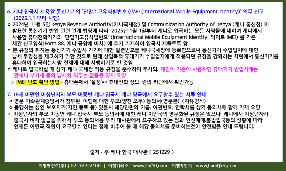 [케냐] 케냐, 입국 요건 종합 ( 전자여행허가서 유효기간 등 ) - 25년 12/29 현재