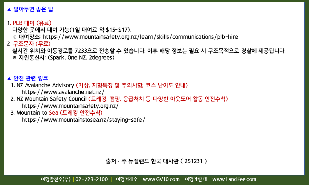 2. NZ Mountain Safety Council (트레킹, 캠핑, 응급처치 등 다양한 아웃도어 활동 안전수칙)