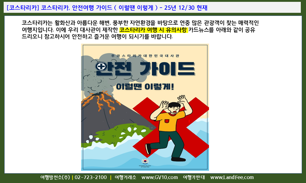 [코스타리카] 코스타리카, 안전여행 가이드 ( 이럴땐 이렇게 ) - 25년 12/30 현재