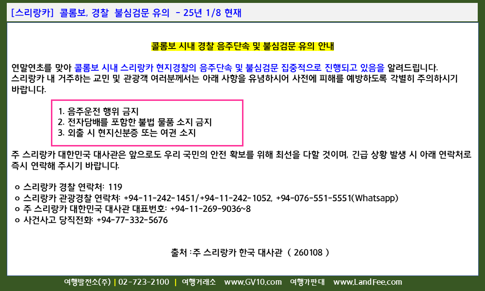 [스리랑카] 콜롬보, 경찰 불심검문 유의 - 25년 1/8 현재