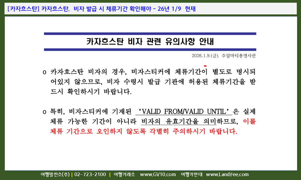 [카자흐스탄] 카자흐스탄, 비자 발급 시 체류기간 확인해야 - 26년 1/9 현재