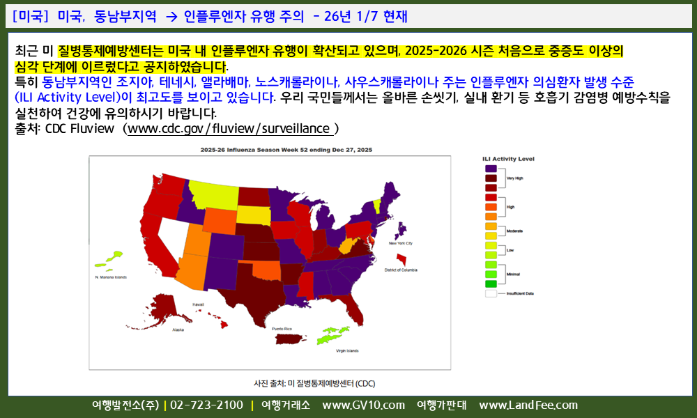 [미국] 미국 내 인플루엔자 (독감) 유행 확산에 따른 주의 안내 - 26년 1/8 현재