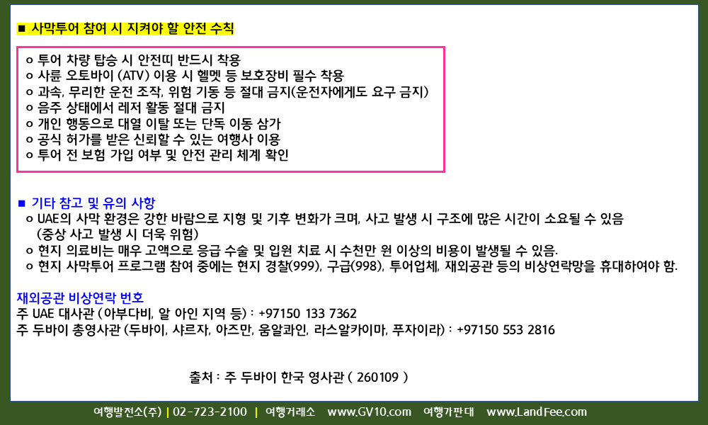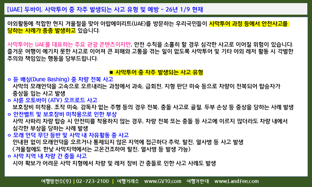[UAE, 아랍에미리트] 두바이, 사막투어 중 자주 발생되는 사고 유형 및 예방 - 26년 1/9 현재