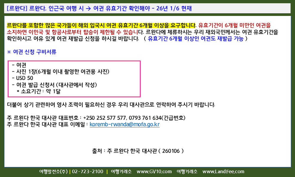[르완다] 르완다, 인근국가 여행 시 -> 여권 유효기간 확인해야 - 26년 1/6 현재