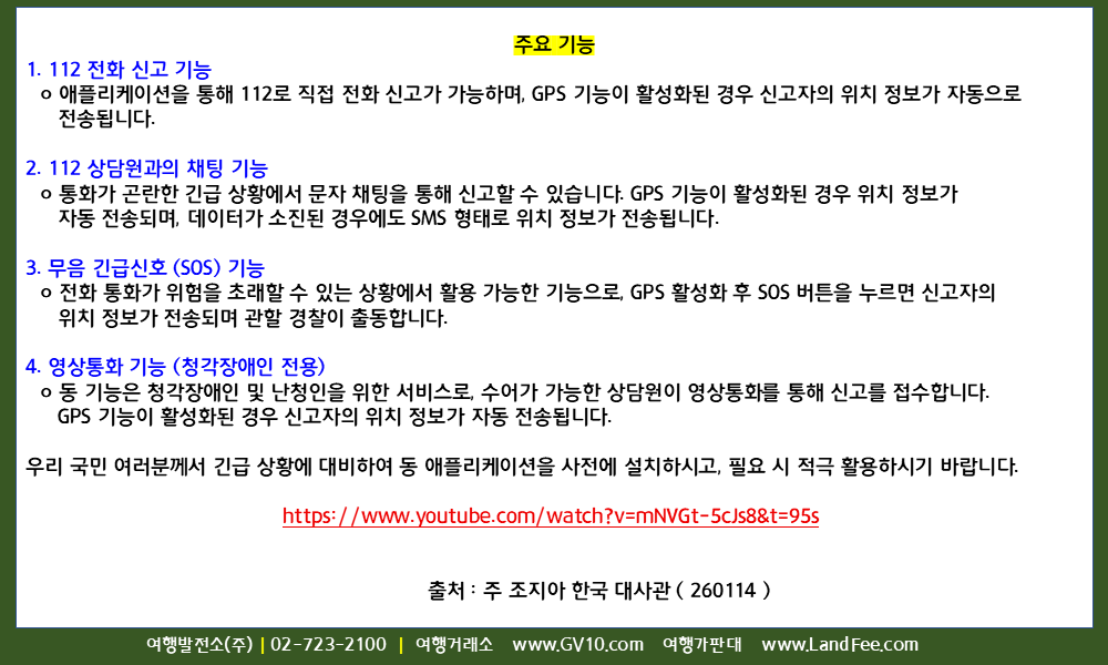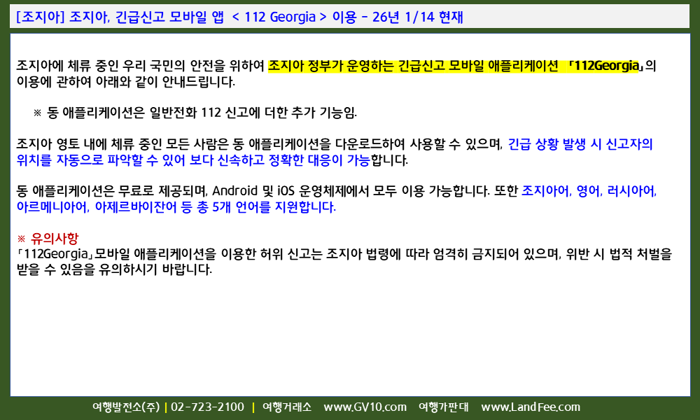 [조지아] 조지아, 긴급신고 모바일 앱 < 112 Georgia > 이용 - 26년 1/14 현재