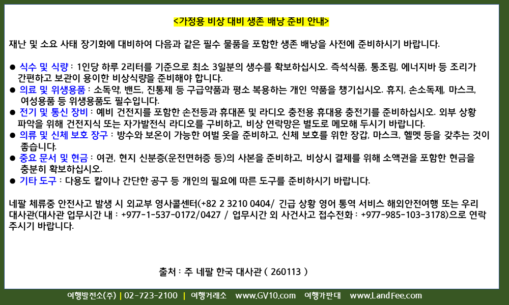 [네팔] 네팔, 정정 불안으로 인한 소요 사태 발생 시 행동 수칙 - 26년 1/13 현재