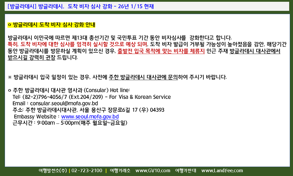 [방글라데시] 방글라데시, 도착 비자 심사 강화 - 26년 1/15 현재