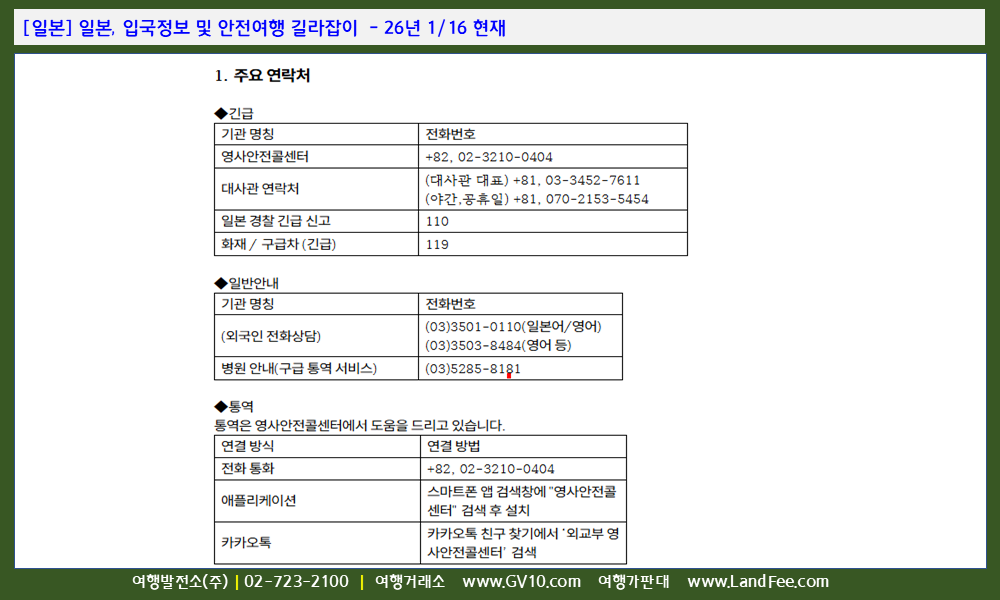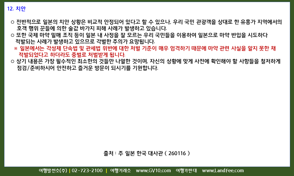 [일본] 일본, 입국정보 및 안전여행 길라잡이 - 26년 1/16 현재