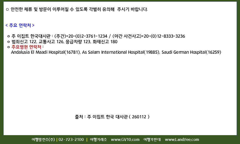 [이집트] 이집트, 도시 간 야간 이동 시 안전 유의 - 26년 1/12 현재
