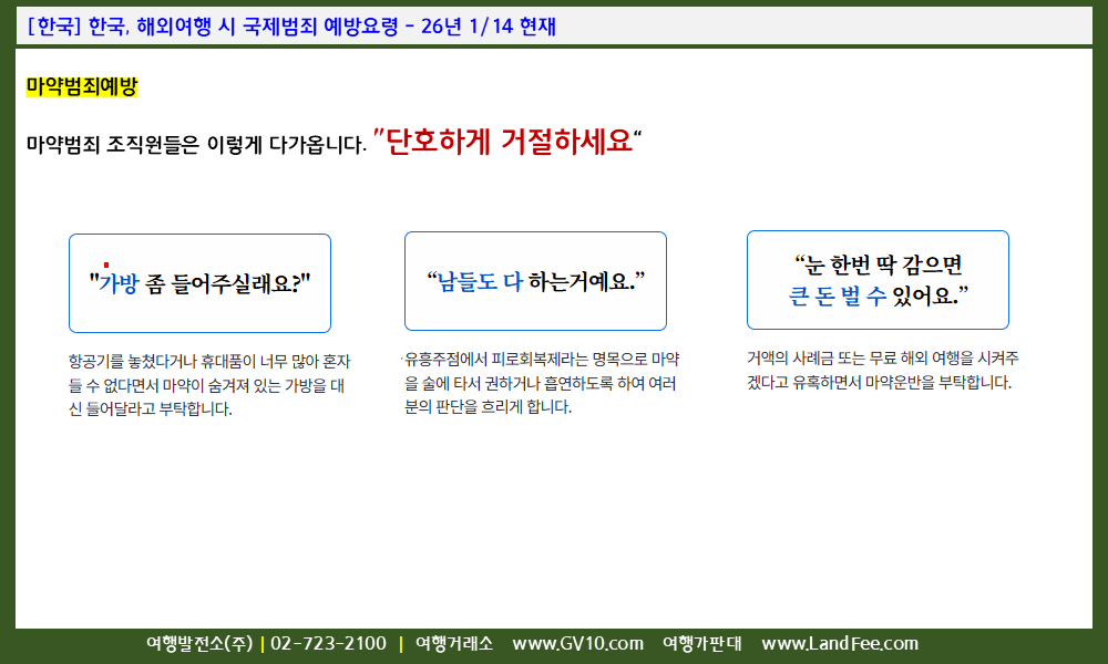 [한국] 한국, 해외여행 시 국제범죄 예방요령 - 26년 1/14 현재