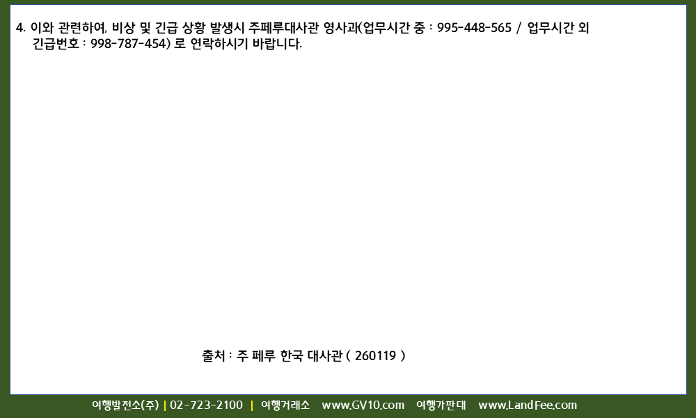 [페루] 리마 수도권 및 카야오 주 -> 국가비상사태 선포 연장 ( 1/20 부터 30일간 ) - 26년 1/19 현재