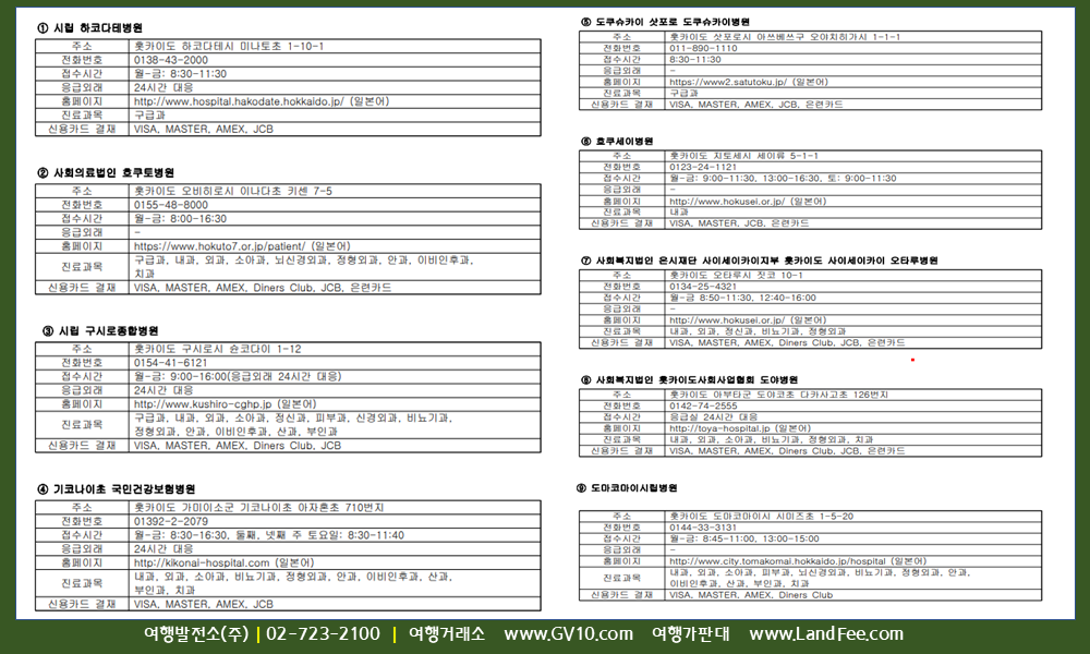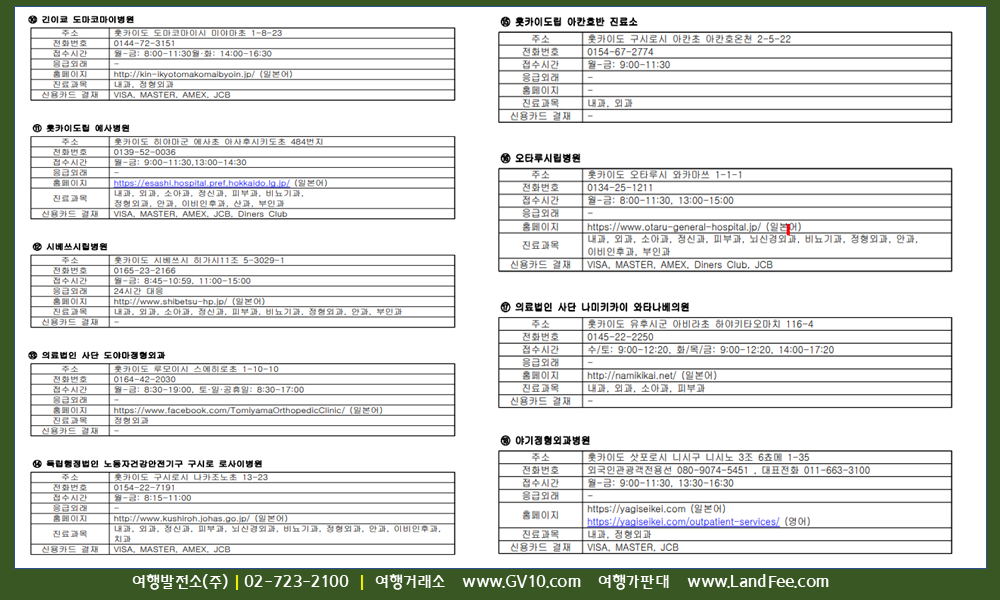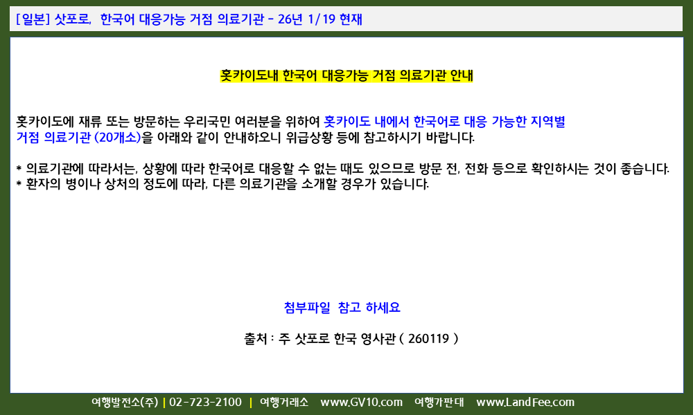 [일본] 삿포로, 한국어 대응가능 거점 의료기관 - 26년 1/19 현재