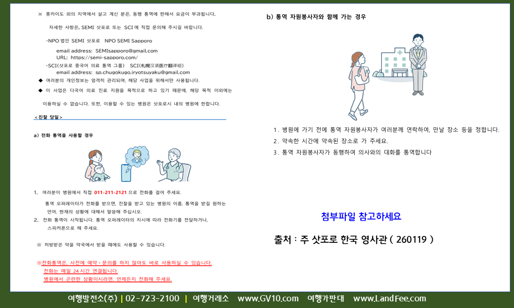 [일본] 삿포로, 메디컬 커뮤니케이션 핫라인 ( 의료기관 예약.진찰 시 통역제공 ) - 26년 1/19 현재