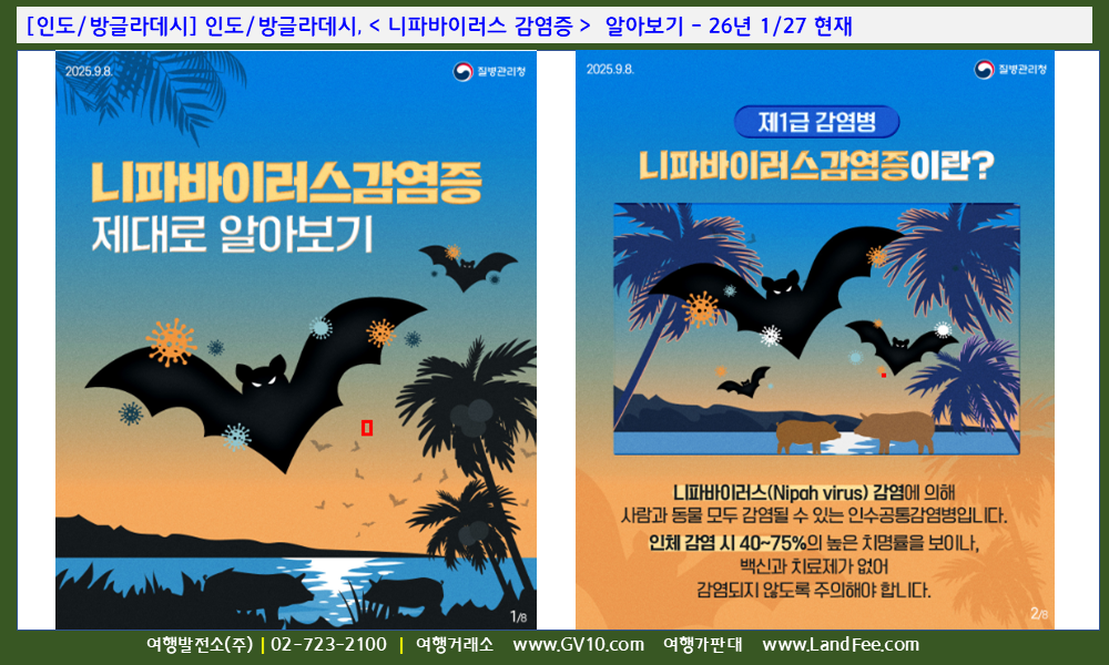 [인도/방글라데시] 인도/방글라데시, < 니파바이러스 감염증 > 알아보기 - 26년 1/27 현재