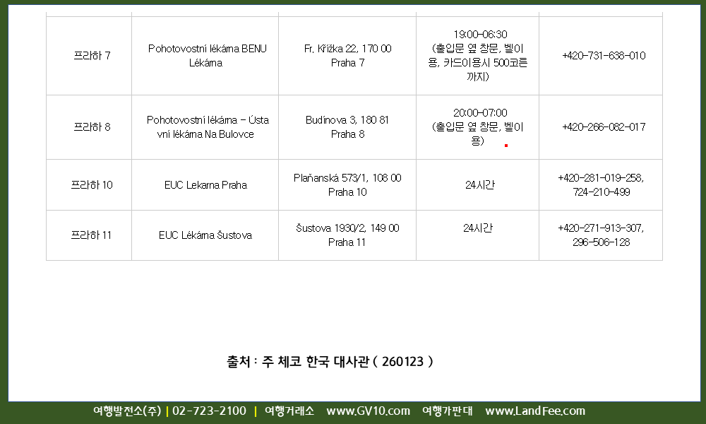 [체코] 프라하, 병원 및 약국 (야간 운영) 정보 - 26년 1/23 현재