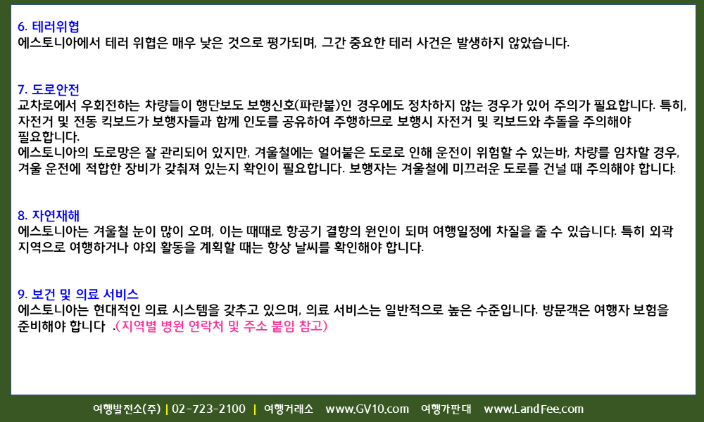 [에스토니아] 에스토니아, 입국정보 및 안전여행 길잡이 - 26년 1/23 현재