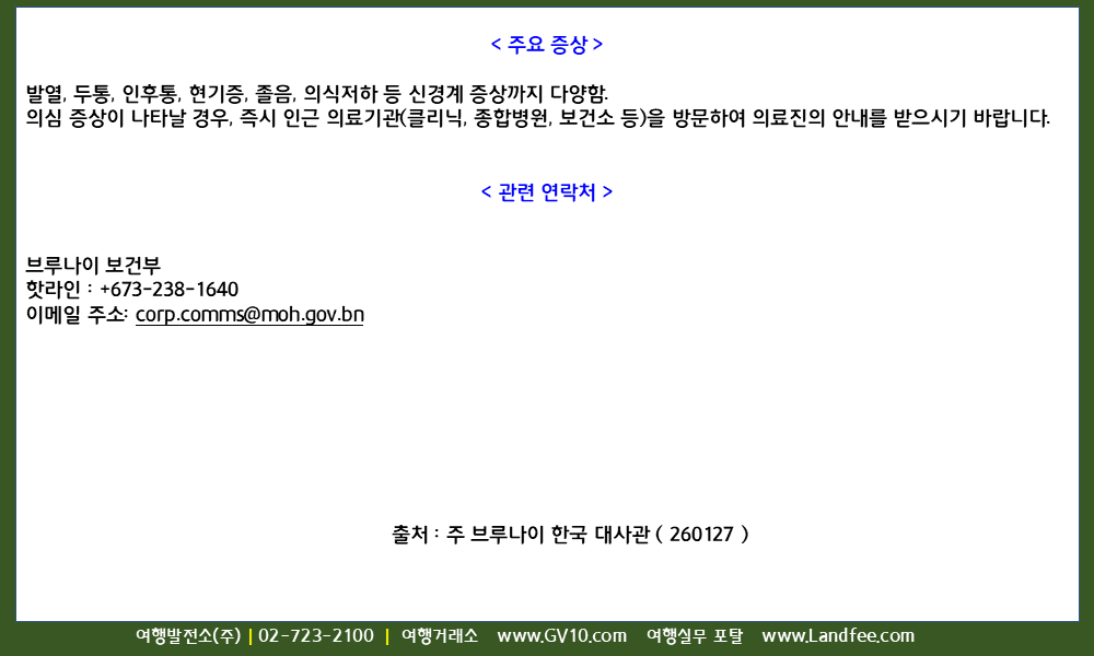 [브루나이] 브루나이, 니파 바이러스 (Nipah Virus) 관련 주의 - 26년 1/30 현재