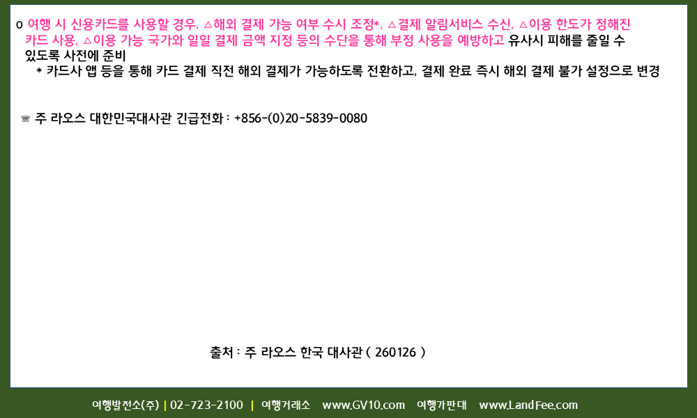 [라오스] 라오스, 현금 도난, 신용카드 이용 시 주의사항 - 26년 1/26 현재
