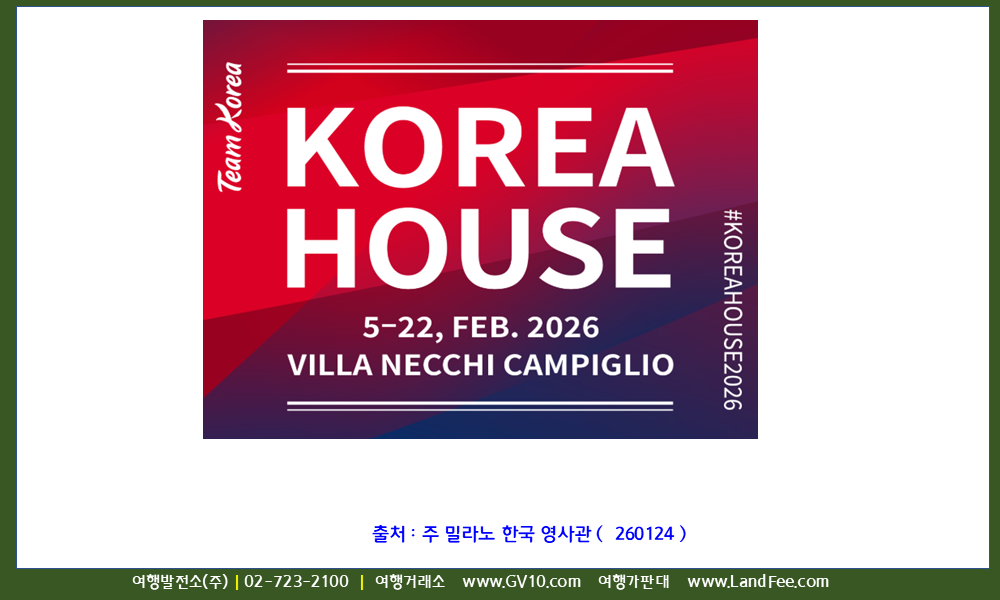 [이탈리아] 밀라노, 2026 밀라노-코르티나 동계올림픽 코리아하우스 운영 ( 2/5 ~ 2/22) -26년 1/24 현재