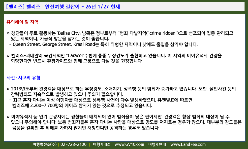 [벨리즈] 벨리즈, 안전여행 길잡이 - 26년 1/27 현재