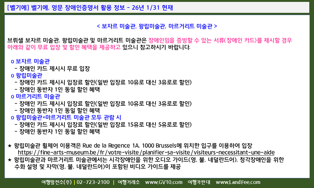 [벨기에] 벨기에, 영문 장애인증명서 활용 정보 - 26년 1/31 현재