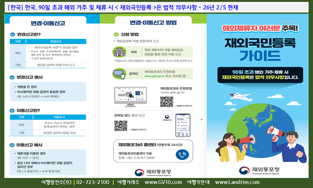 [한국] 한국, 90일 초과 해외 거주 및 체류 시 < 재외국인등록 >은 법적 의무사항 - 26년 2/5 현재