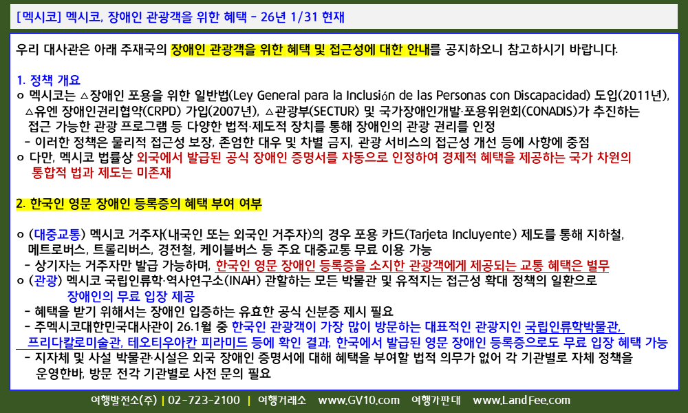 [멕시코] 멕시코, 장애인 관광객을 위한 혜택 - 26년 1/31 현재