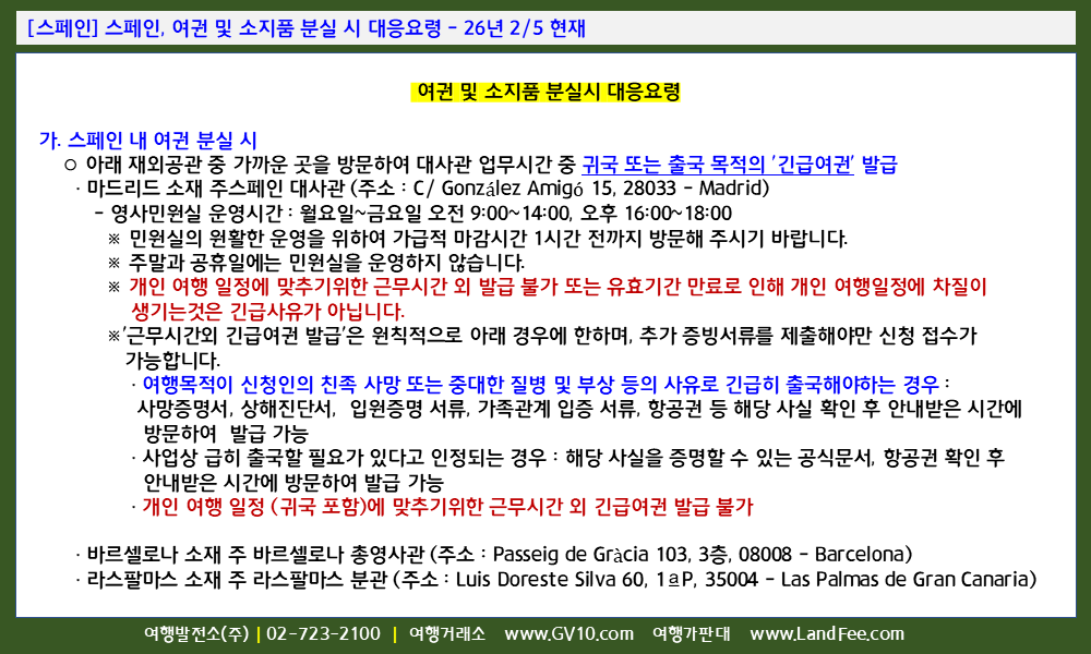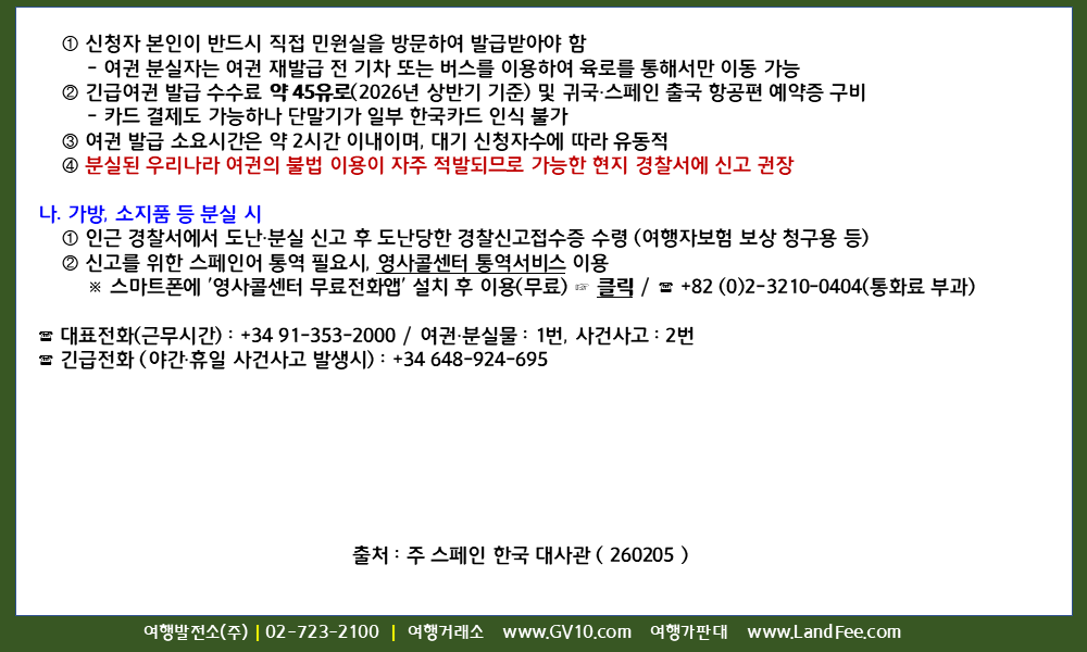 [스페인] 스페인, 여권 및 소지품 분실 시 대응요령 - 26년 2/5 현재