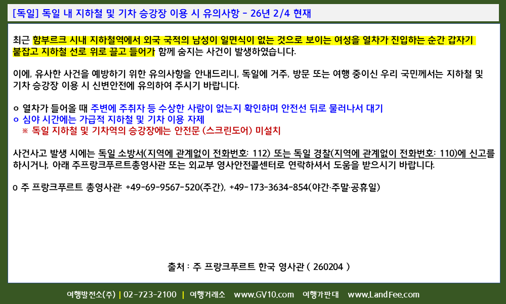 [독일] 독일 내 지하철 및 기차 승강장 이용 시 유의사항 - 26년 2/4 현재