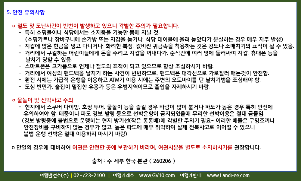 아시아 > 필리핀 > 마닐라/세부/보라카이/보홀 > 현지정보