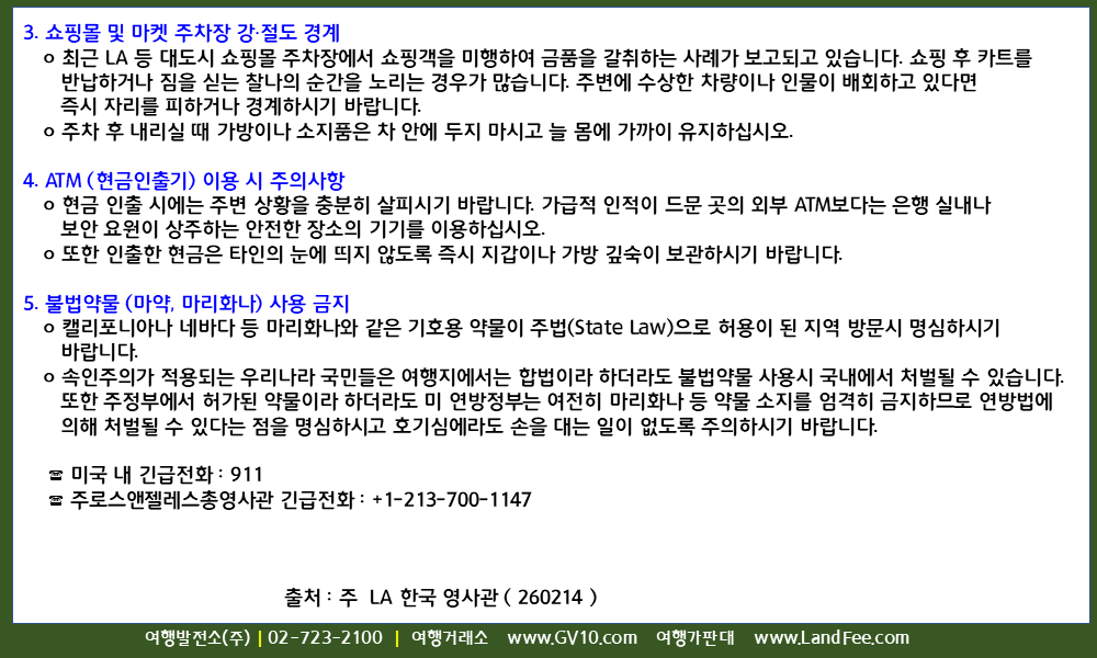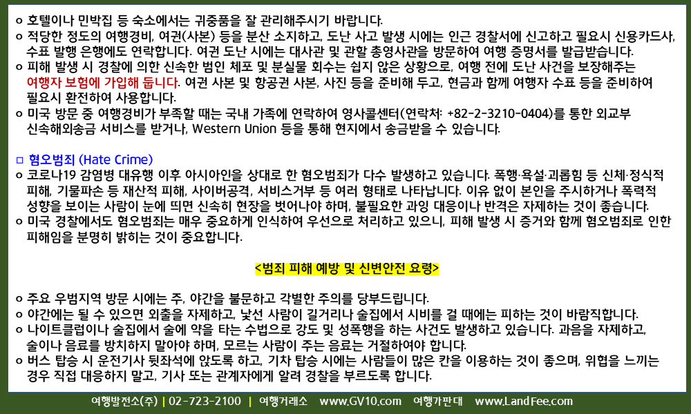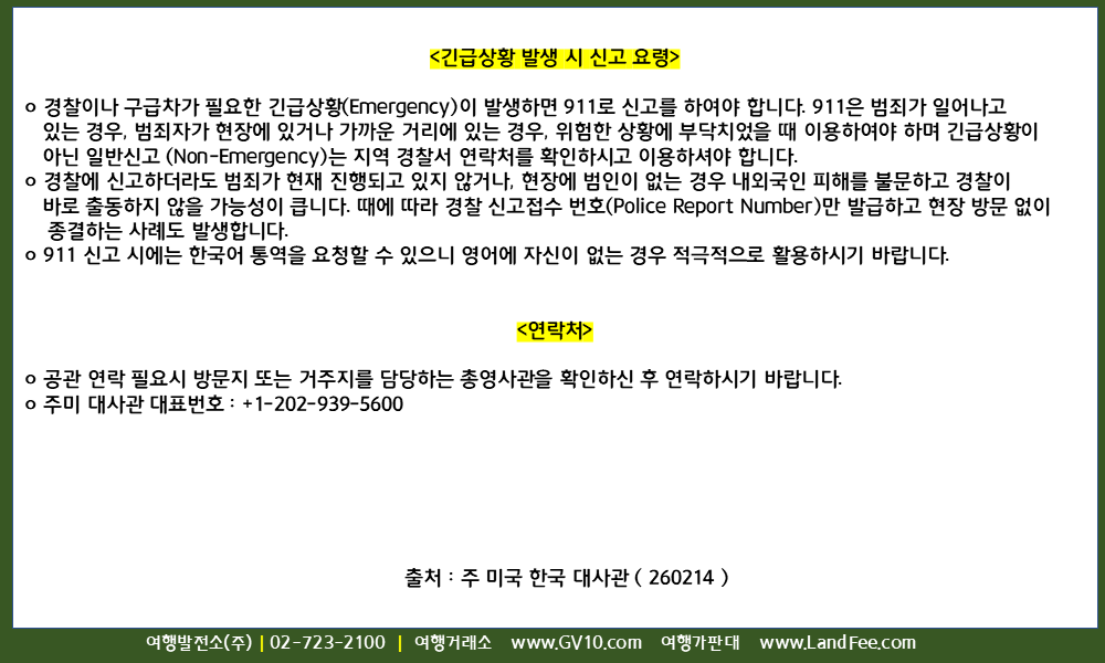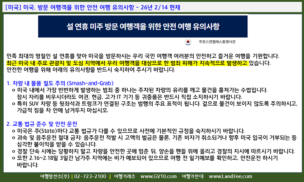[미국] 미국, 방문 여행객을 위한 안전 여행 유의사항 - 26년 2/14 현재