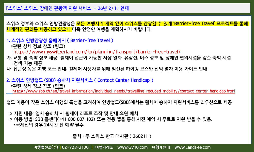 스위스 연방관광청 홈페이지 ( Barrier-free Travel )