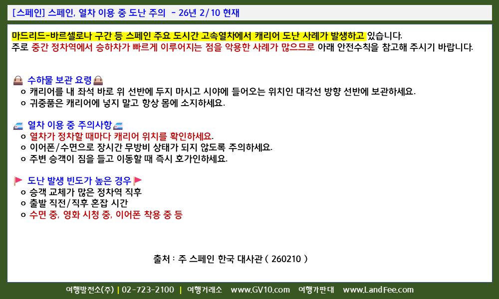 [스페인] 스페인, 열차 이용 중 도난 주의 - 26년 2/10 현재