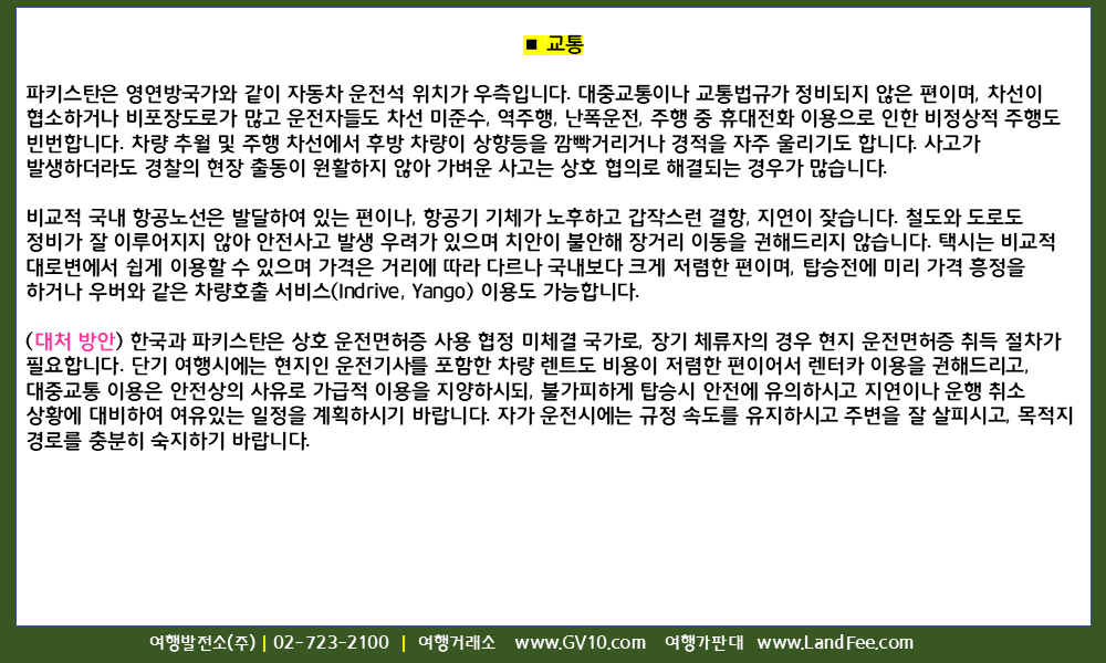 [파키스탄] 파키스탄, 출입국정보 및 안전여행 길잡이 - 26년 2/17 현재