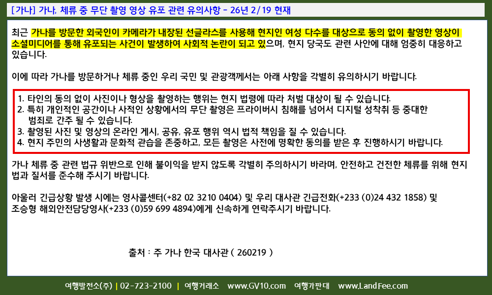 [가나] 가나, 체류 중 무단 촬영 영상 유포 관련 유의사항 - 26년 2/19 현재