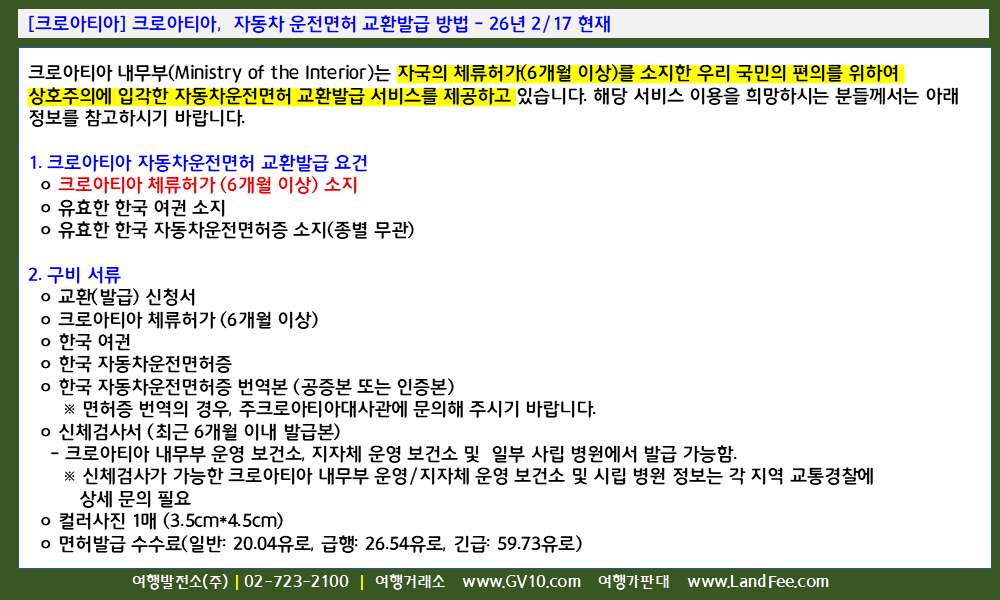 [크로아티아] 크로아티아, 자동차 운전면허 교환발급 방법 - 26년 2/17 현재