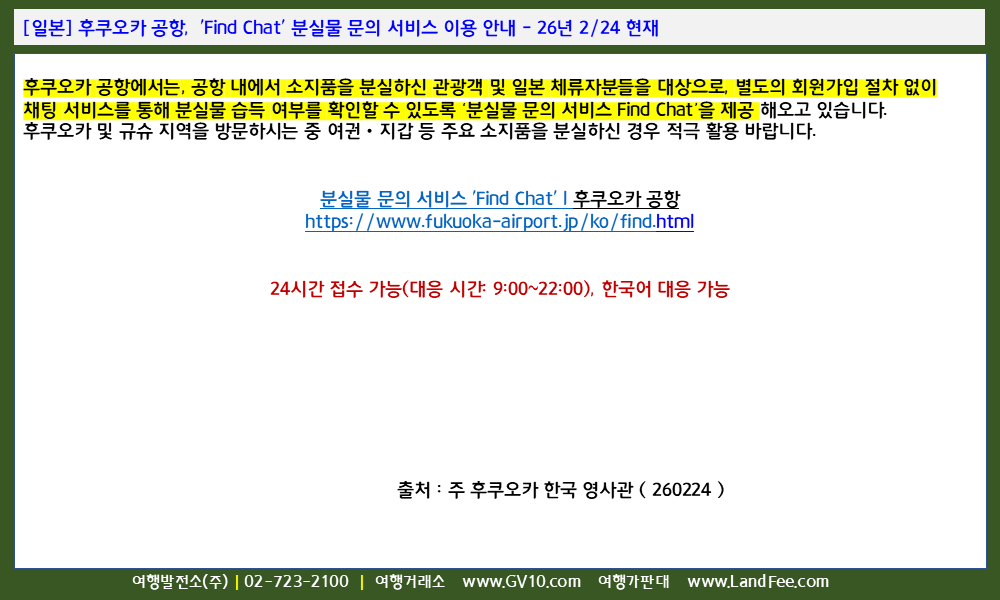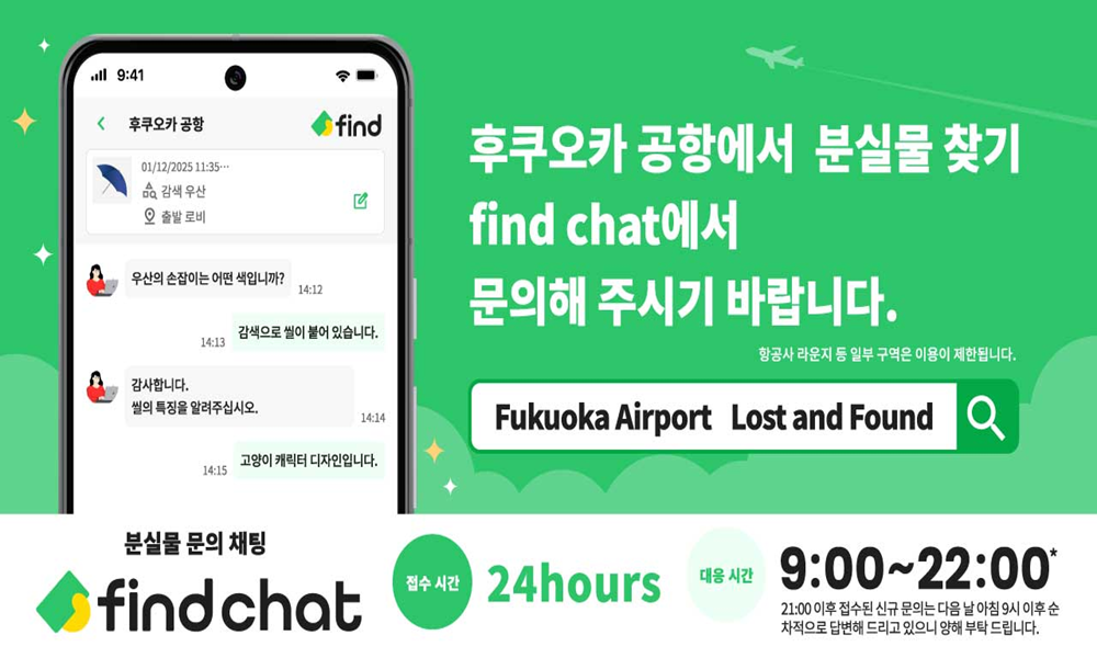 [일본] 후쿠오카 공항, < Find Chat > 분실물 문의 서비스 이용 안내 - 26년 2/24 현재