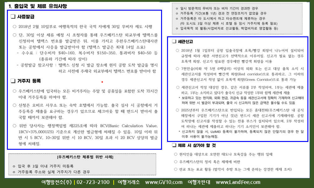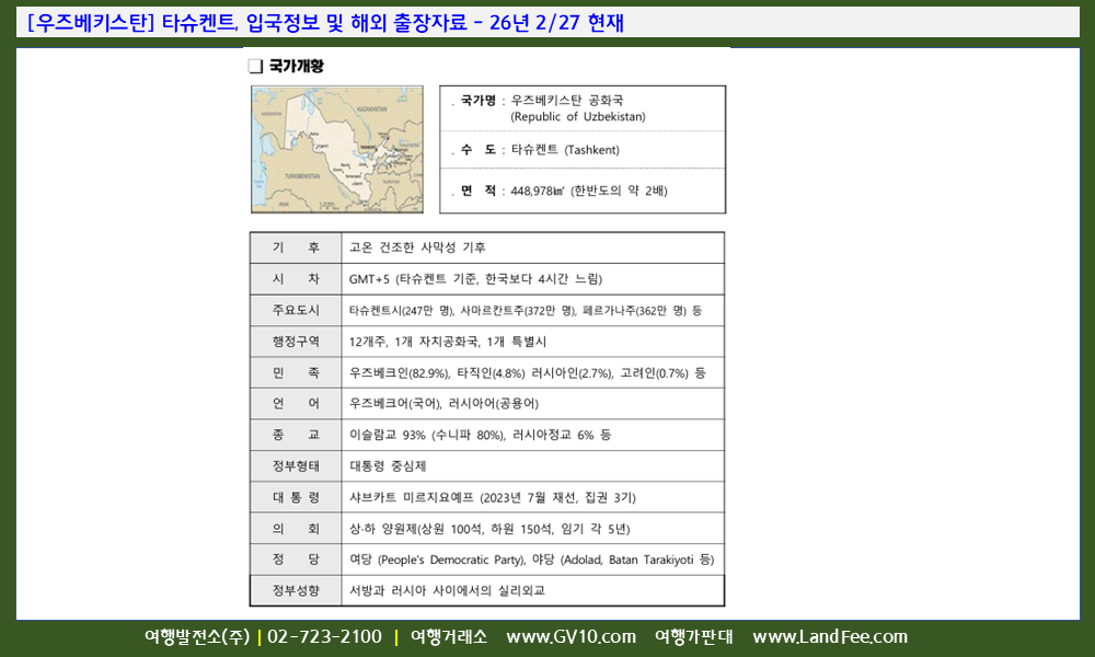 [우즈베키스탄] 타슈켄트, 입국정보 및 해외 출장자료 - 26년 2/27 현재