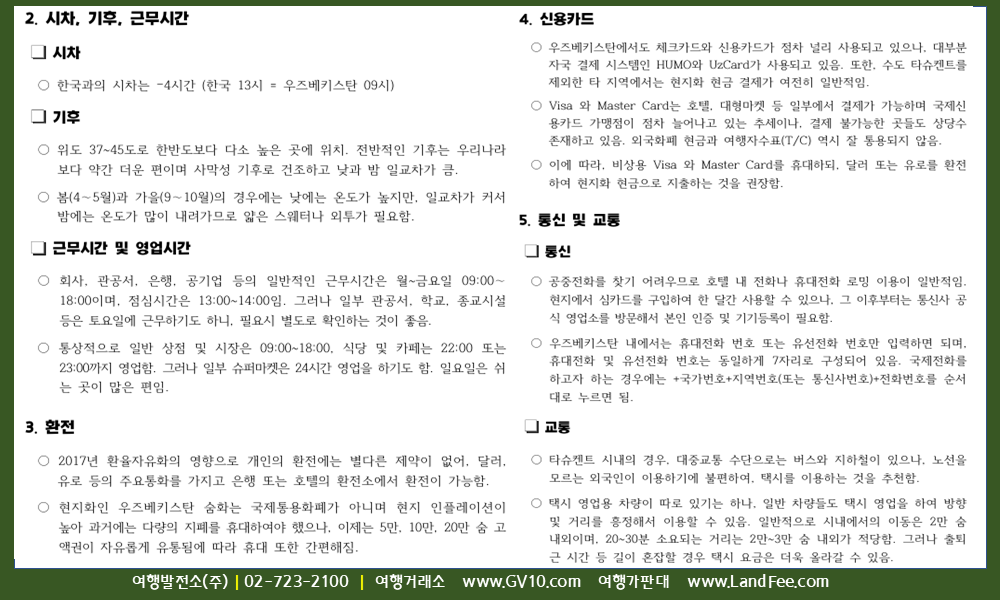 아시아 > 우즈베키스탄 > 타슈켄트 > 현지정보