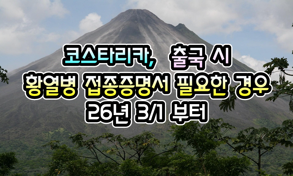 [코스타리카] 코스타리카, 출국 시 -> 황열병접종증명서가 필요한 경우 ( 3/1 부터 ) - 26년 3/7 현재