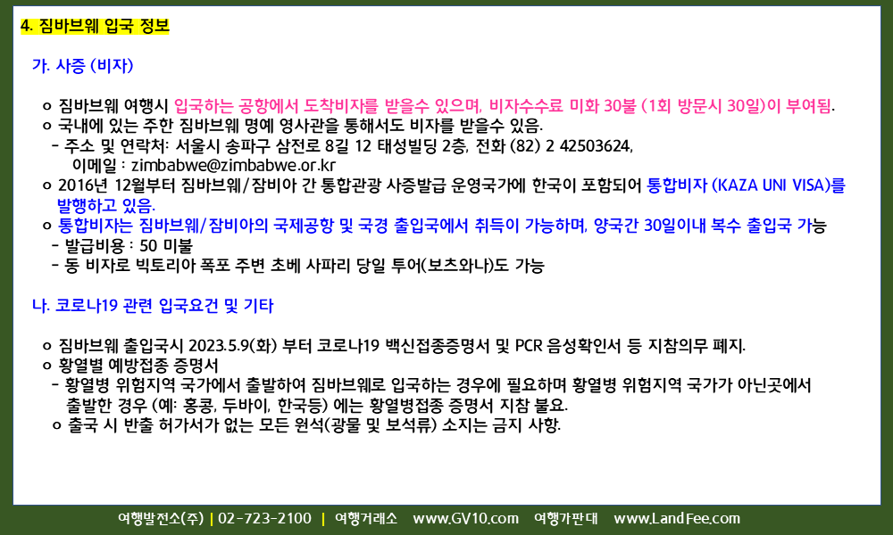 [짐바브웨] 짐바브웨, 입국 정보 및 안전여행 길잡이 - 26년 2/28 현재