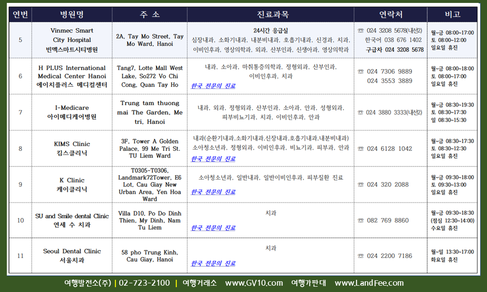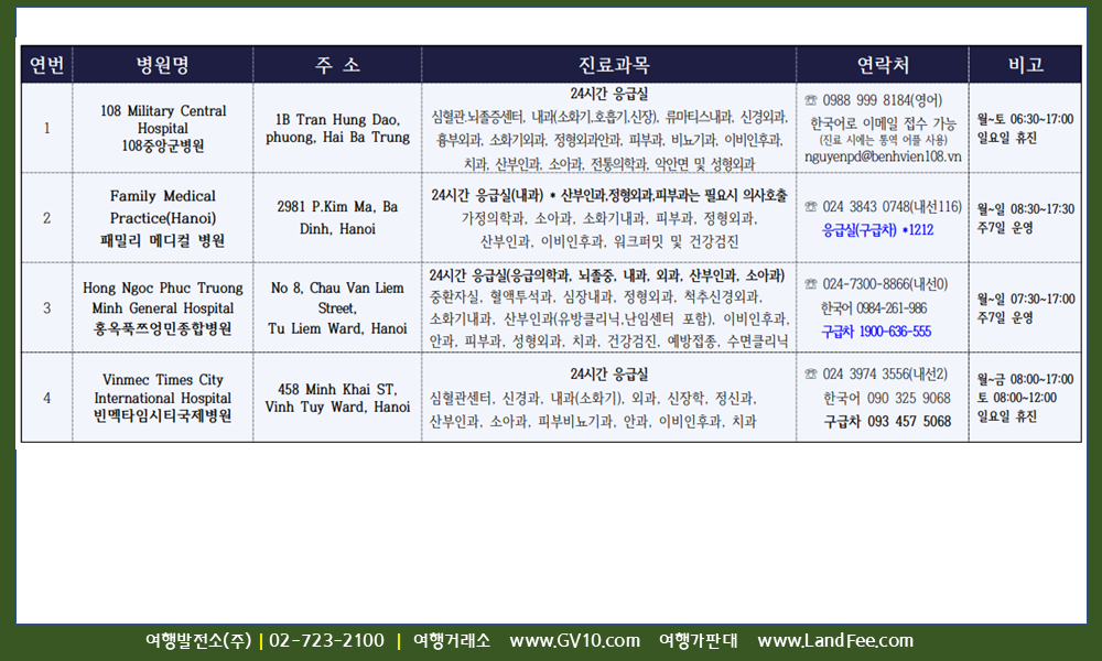 [베트남] 하노이, 한국어 진료 가능한 병원 - 26년 3/14 현재